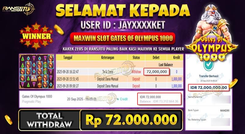 Hadiah telah di WD (Withdraw) oleh player yang bersangkutan Terima kasih untuk member setia kami telah mempercayakan RANSJITU sebagai BO pilihan anda Post navigation PANTANG PULANG SEBELUM PETIR! SABAR DIUJI, SALDO DIBANJIRI! KEMENANGAN GACOR !! HANYA SLOT RANSJITU JAWABANNYA