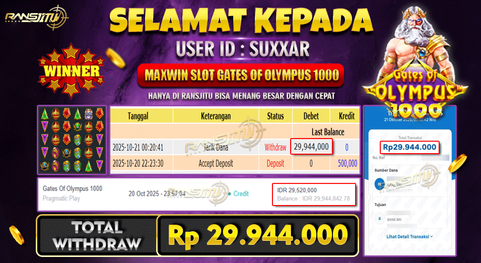 Hadiah telah di WD (Withdraw) oleh player yang bersangkutan Terima kasih untuk member setia kami telah mempercayakan RANSJITU sebagai BO pilihan anda Post navigation DANA ASAL MENANG MAKSIMAL??? BUKAN SEKADAR KATA KATA, BUKAN ANGAN ANGAN BELAKA, RANSJITU FAKTA SEBENARNYA!