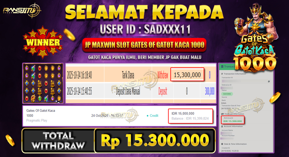 Hadiah telah di WD (Withdraw) oleh player yang bersangkutan Terima kasih untuk member setia kami telah mempercayakan RANSJITU sebagai BO pilihan anda