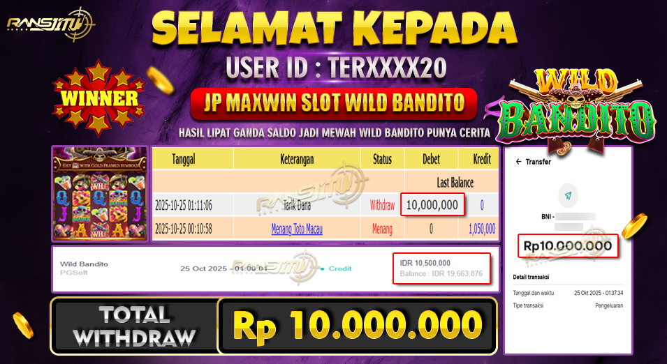 Hadiah telah di WD (Withdraw) oleh player yang bersangkutan Terima kasih untuk member setia kami telah mempercayakan RANSJITU sebagai BO pilihan anda