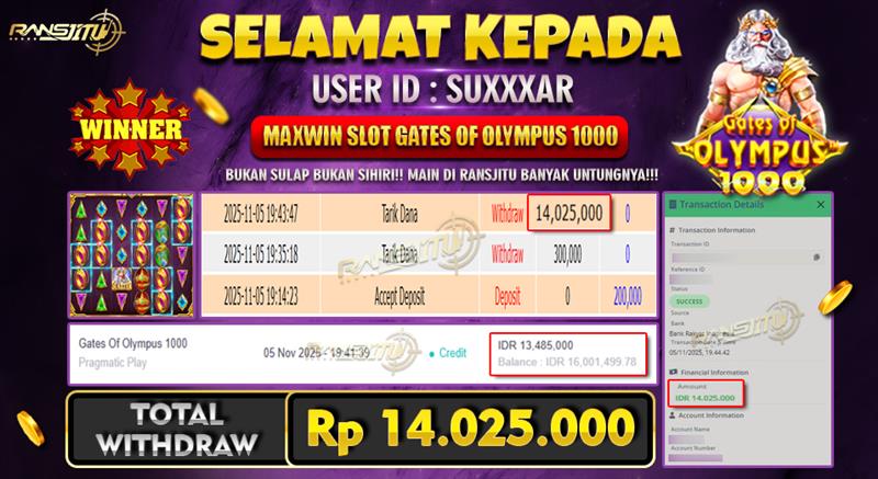 Hadiah telah di WD (Withdraw) oleh player yang bersangkutan Terima kasih untuk member setia kami telah mempercayakan RANSJITU sebagai BO pilihan anda