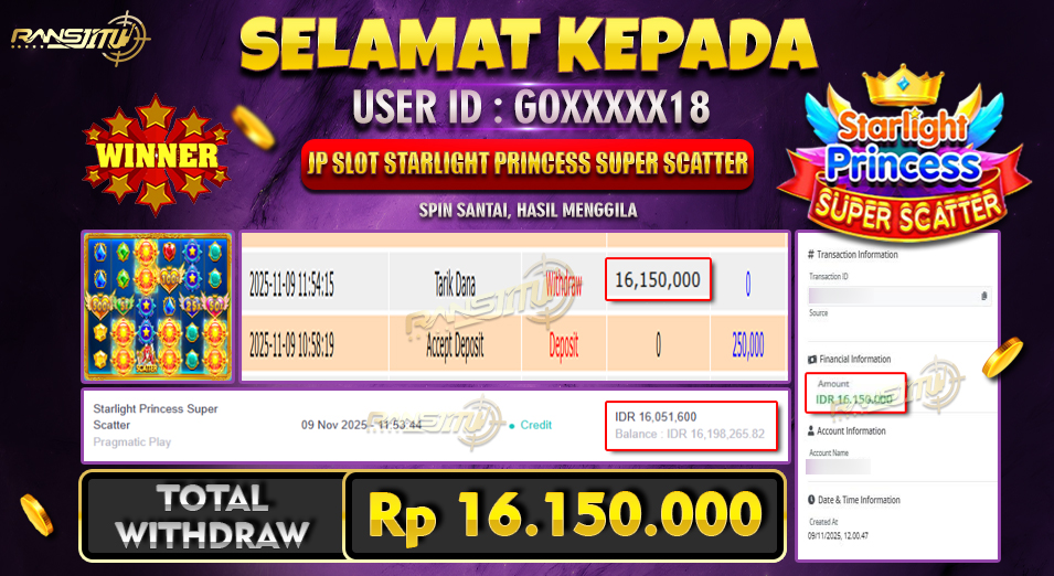Hadiah telah di WD (Withdraw) oleh player yang bersangkutan Terima kasih untuk member setia kami telah mempercayakan RANSJITU sebagai BO pilihan anda