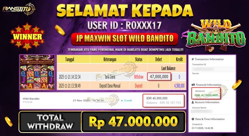Hadiah telah di WD (Withdraw) oleh player yang bersangkutan Terima kasih untuk member setia kami telah mempercayakan RANSJITU sebagai BO pilihan anda