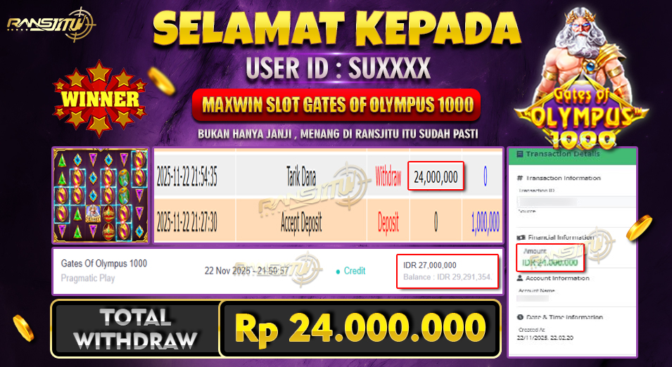Hadiah telah di WD (Withdraw) oleh player yang bersangkutan Terima kasih untuk member setia kami telah mempercayakan RANSJITU sebagai BO pilihan anda Post navigation DARI BONUS ROLLINGAN MEMBAWA HOKI BERKEPANJANGAN!! TETAP OPTIMIS HINGGA PETIR DAN GUNTUR SALING BERLAGA SERU!!