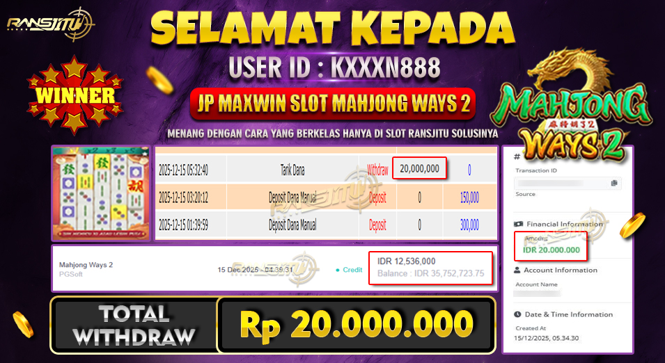 Hadiah telah di WD (Withdraw) oleh player yang bersangkutan Terima kasih untuk member setia kami telah mempercayakan RANSJITU sebagai BO pilihan anda
