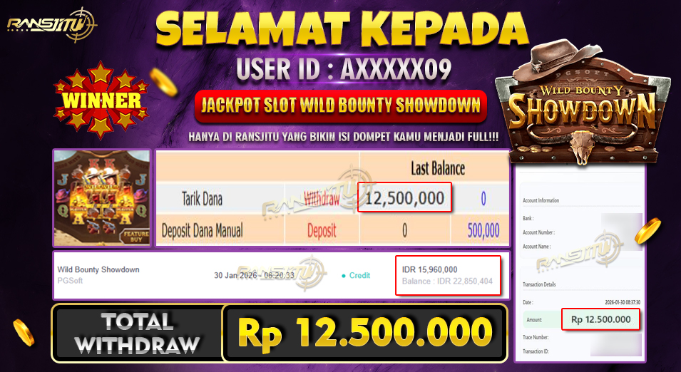 Hadiah telah di WD (Withdraw) oleh player yang bersangkutan Terima kasih untuk member setia kami telah mempercayakan RANSJITU sebagai BO pilihan anda Post navigation BUY FREE SPIN AUTO MEGA WIN SPIN NAIK, PETIR ZEUS TURUNG MENYAMBAR, HASIL LANGSUNG TERASA