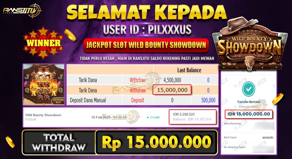 Hadiah telah di WD (Withdraw) oleh player yang bersangkutan Terima kasih untuk member setia kami telah mempercayakan RANSJITU sebagai BO pilihan anda