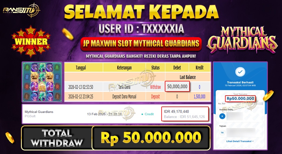 Hadiah telah di WD (Withdraw) oleh player yang bersangkutan Terima kasih untuk member setia kami telah mempercayakan RANSJITU sebagai BO pilihan anda