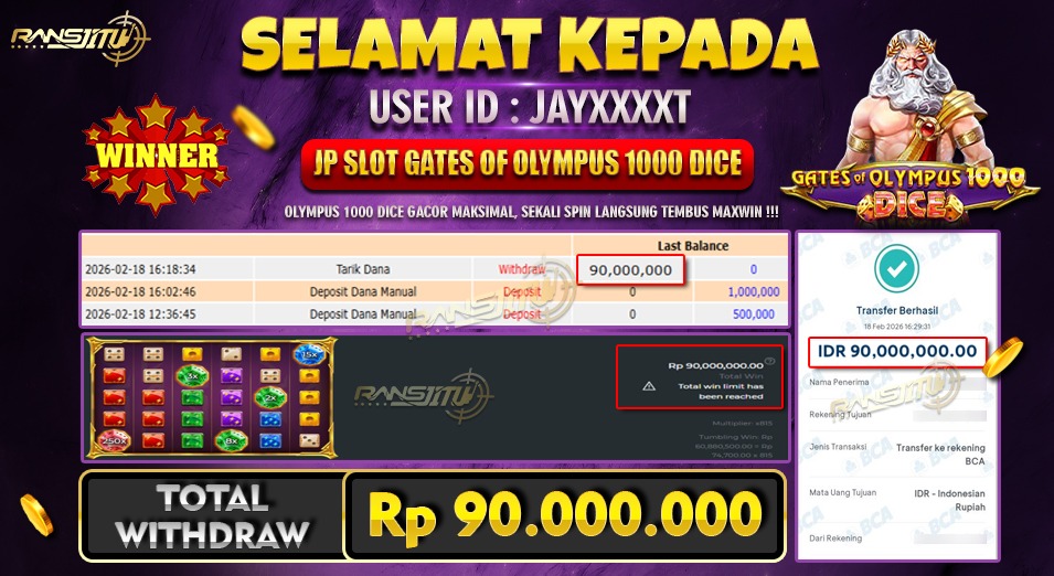 Hadiah telah di WD (Withdraw) oleh player yang bersangkutan Terima kasih untuk member setia kami telah mempercayakan RANSJITU sebagai BO pilihan anda Post navigation PASANG ANGKA JITU MU DI RANSJITU, MENANG BERAPA PUN DI BAYAR LUNAS TUNTAS !!!!