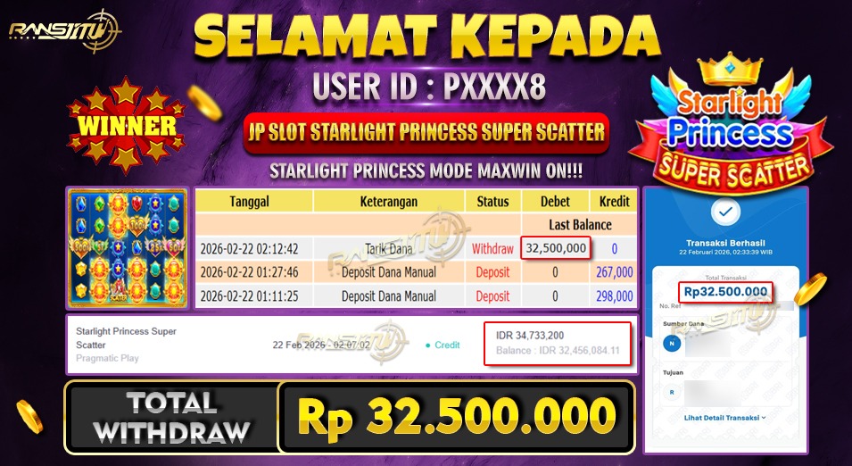 Hadiah telah di WD (Withdraw) oleh player yang bersangkutan Terima kasih untuk member setia kami telah mempercayakan RANSJITU sebagai BO pilihan anda