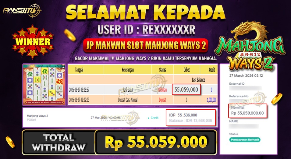 Hadiah telah di WD (Withdraw) oleh player yang bersangkutan Terima kasih untuk member setia kami telah mempercayakan RANSJITU sebagai BO pilihan anda