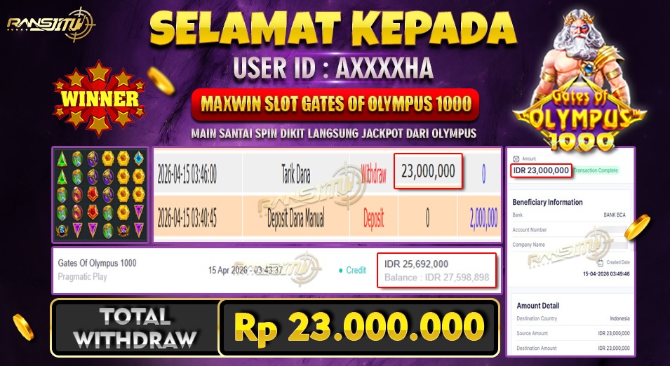 Hadiah telah di WD (Withdraw) oleh player yang bersangkutan Terima kasih untuk member setia kami telah mempercayakan RANSJITU sebagai BO pilihan anda Post navigation MODE GACOR AKTIF !! MAHJONG WINS 3 KASIH BLACK SCATER, HASILNYA AUTO MAXWIN !!!!