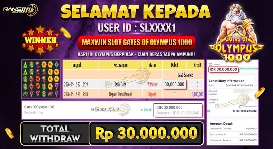 Hadiah telah di WD (Withdraw) oleh player yang bersangkutan Terima kasih untuk member setia kami telah mempercayakan RANSJITU sebagai BO pilihan anda Post navigation MODE GACOR AKTIF !! MAHJONG WINS 3 KASIH BLACK SCATER, HASILNYA AUTO MAXWIN !!!!